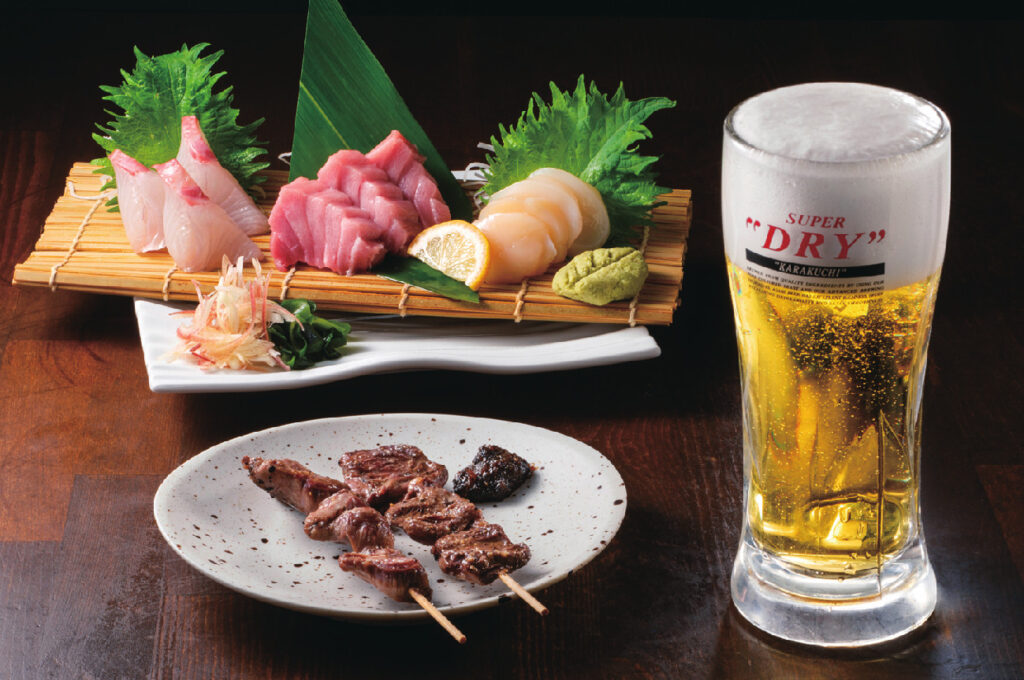 ・お刺身3種盛り、串2種盛り(タレor塩を選)※仕入れ状況により内容変更の場合あり