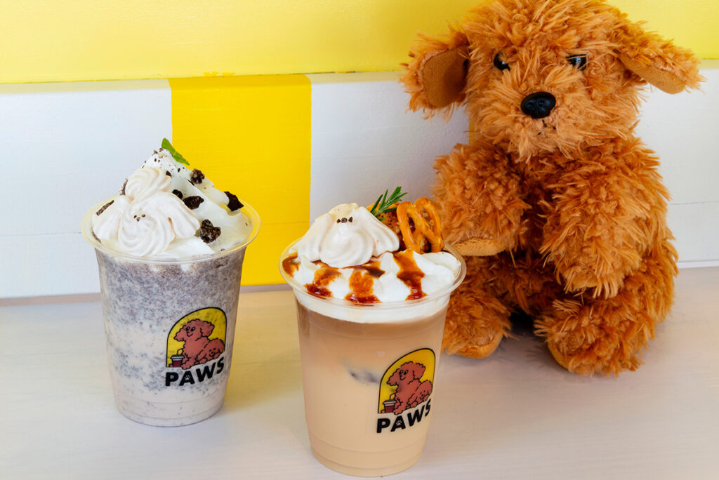 「PAWSシェイク~オレオクッキー~」(980円)や「PAWSキャラメルラテ」(980円)。甘さ控えめで飲みやすく、何度でも楽しめる味わい
