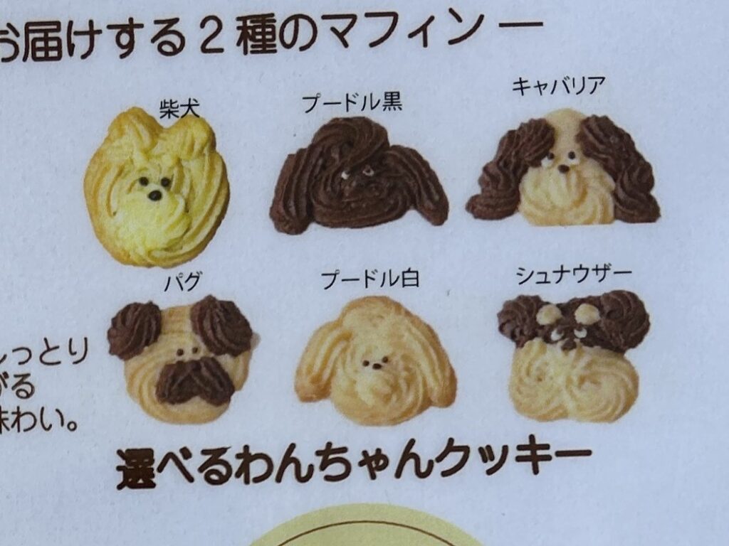 取材時点では柴犬、プードル(黒)、キャバリア、パグ、プードル(白)、シュナウザーの6種のクッキーがありました!