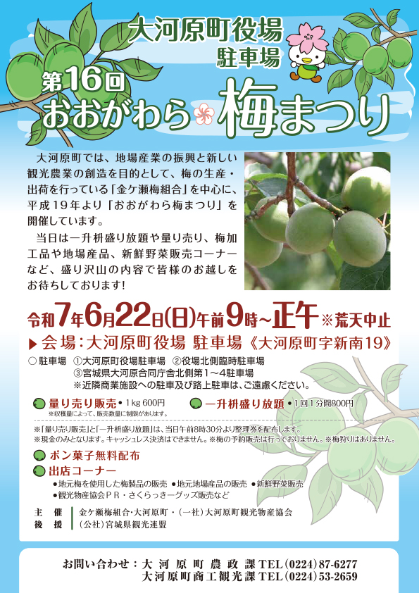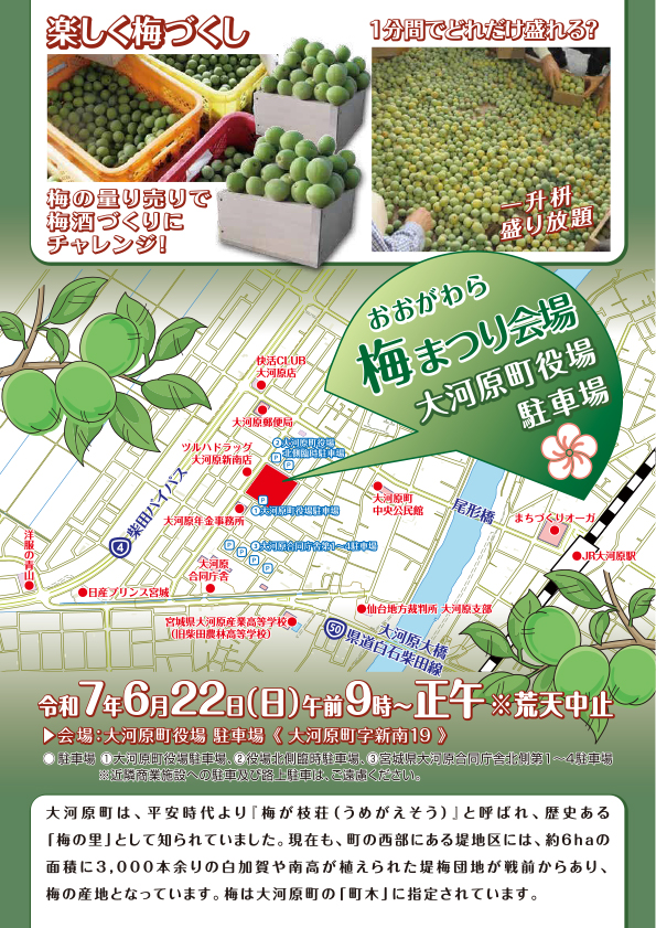 宮城・大河原町で毎年開催されている『おおがわら梅まつり』、今年は 6月22日(日) に開催されます!