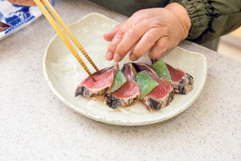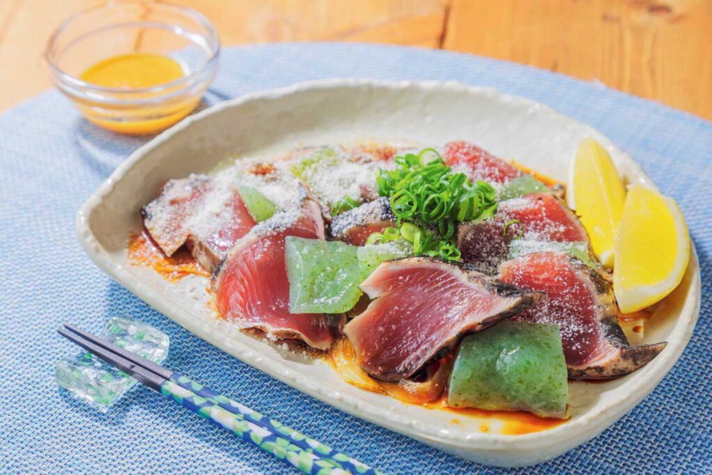 身が締まってすっきりとした味わいは、刺身やたたきで食べるのはもちろん、アレンジ食材としても優秀です。