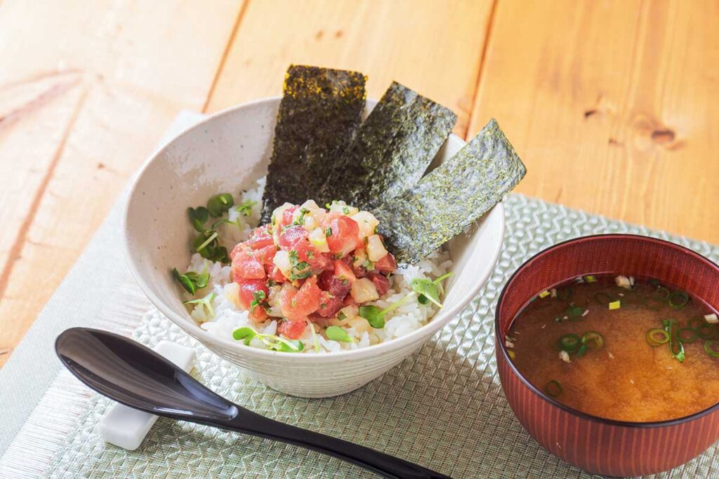 ご飯がモリモリすすむ「『めぐみ野』気仙沼産生かつおとホタテのなめろう丼」