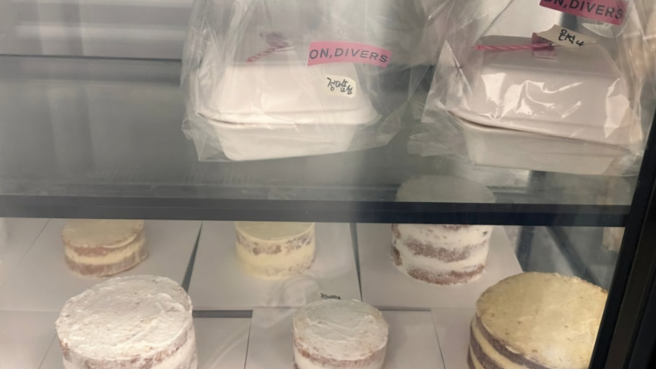 冷蔵庫に保管されている自分の予約した「도시락케이크」-ドシラクケイク-を受け取ります🎂✨