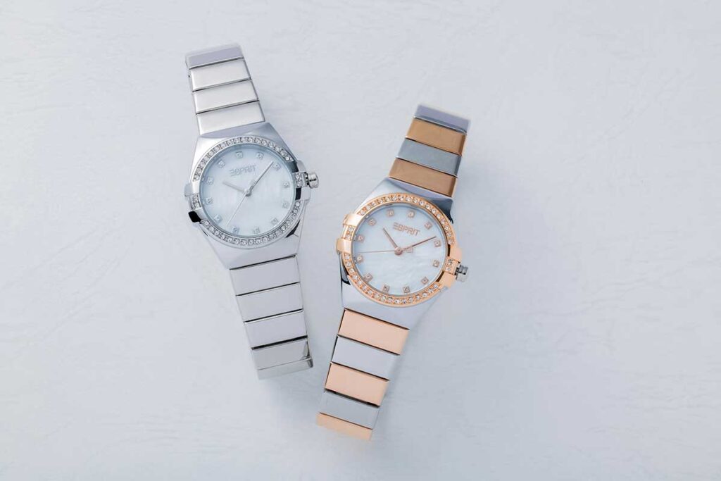サンフランシスコ発のトータルファッションブランド『エスプリ』の時計は、トレンド感のある女性らしいデザインがポイント。煌びやかに飾られたケースが印象的な新作は、ラグジュアリーかつ洗練されたデザインで、薄着シーズンの腕元を上品に彩ってくれます。
