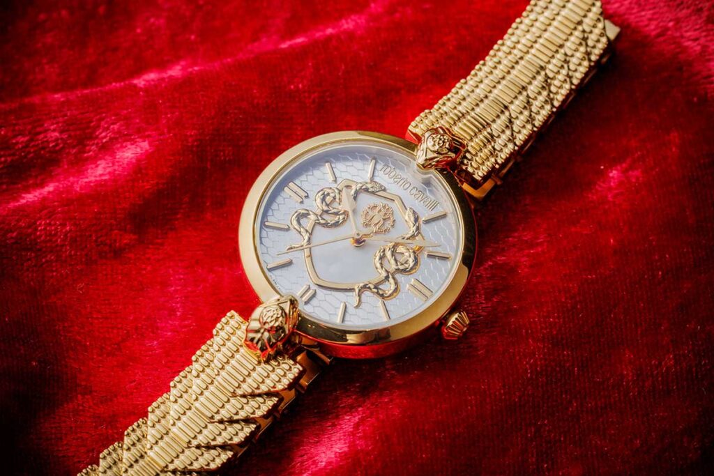 女性のためのラグジュアリーウォッチに定評のある『ロベルト カヴァリ バイ フランク ミュラー』の新作は、スネークを模したオリジナリティ溢れるベルトのデザインが魅力。アクセサリーとして存分に活躍してくれそうです。