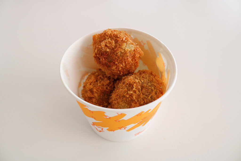 これからの時期は「いも煮コロッケ」もおすすめ。地元の山形県立村山産業高等学校の生徒とのコラボ商品で、里芋のねっとり感が人気の商品
