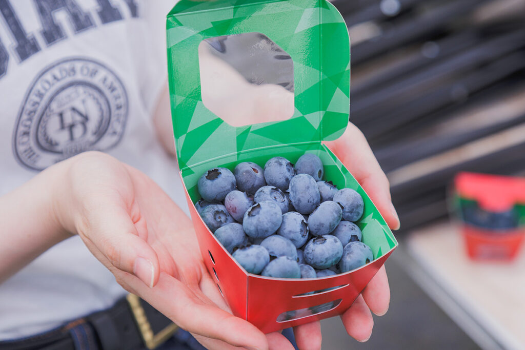 品種によって大きさはもちろん、酸味が強かったり、甘みが強かったりと、食べ比べをできるのもブルーベリー摘み採りの醍醐味。