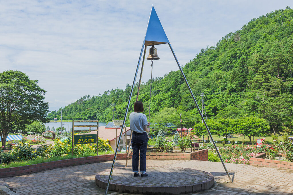 バラの香りに包まれながら公園内を進んでいくと、大きな鐘を発見。