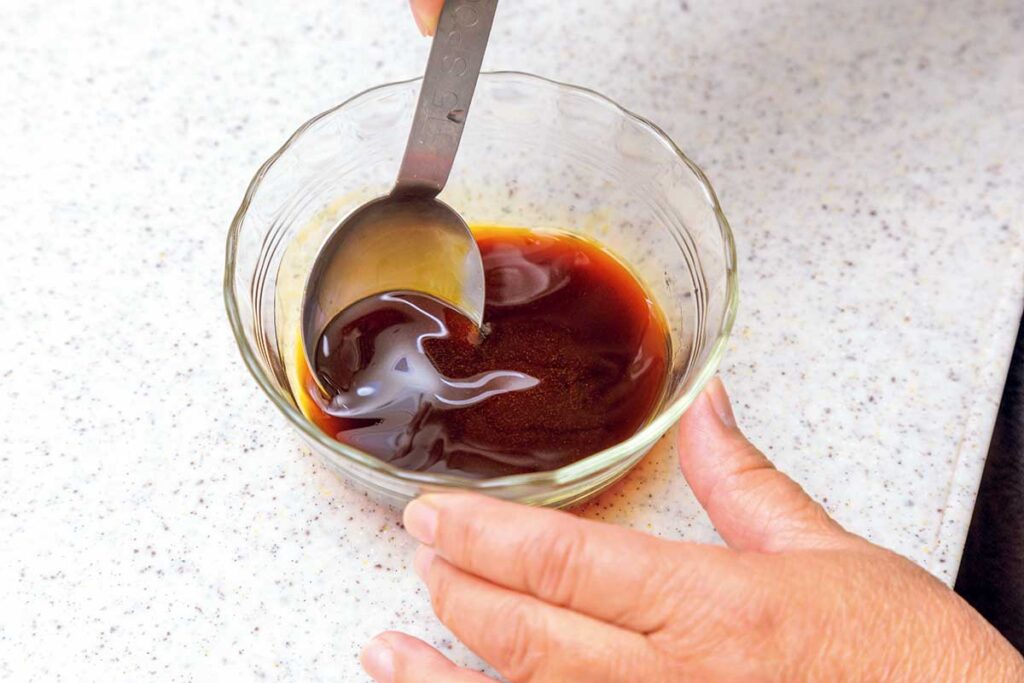 合わせ調味料を作っておくと慌てず味つけができます。砂糖は溶けにくいのでよく混ぜてください