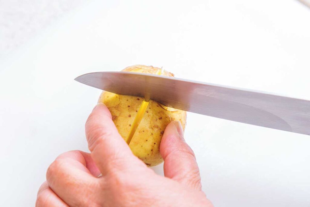 あらかじめ十字に切れ目を入れると、中までしっかり加熱されてホクホクな仕上がりに