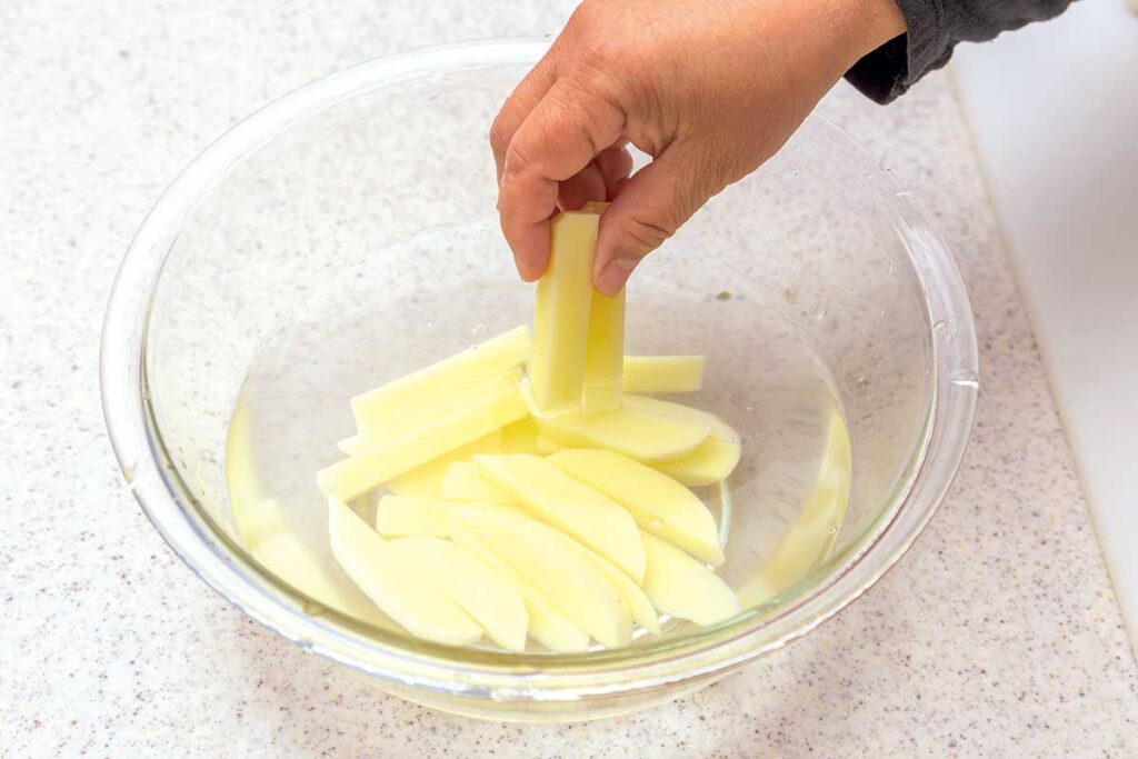 じゃがいもはカットしたら10分ほど水につけてあく抜きをしておきます