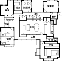 【Beforeの図面】部屋の真ん中に畳の今がある純和風の平屋住宅を購入