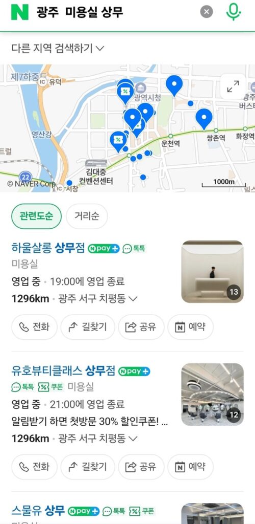 韓国の美容室を探すならNAVERがオススメ✨検索部分に地名を入力すると近くの美容室が出てきます!