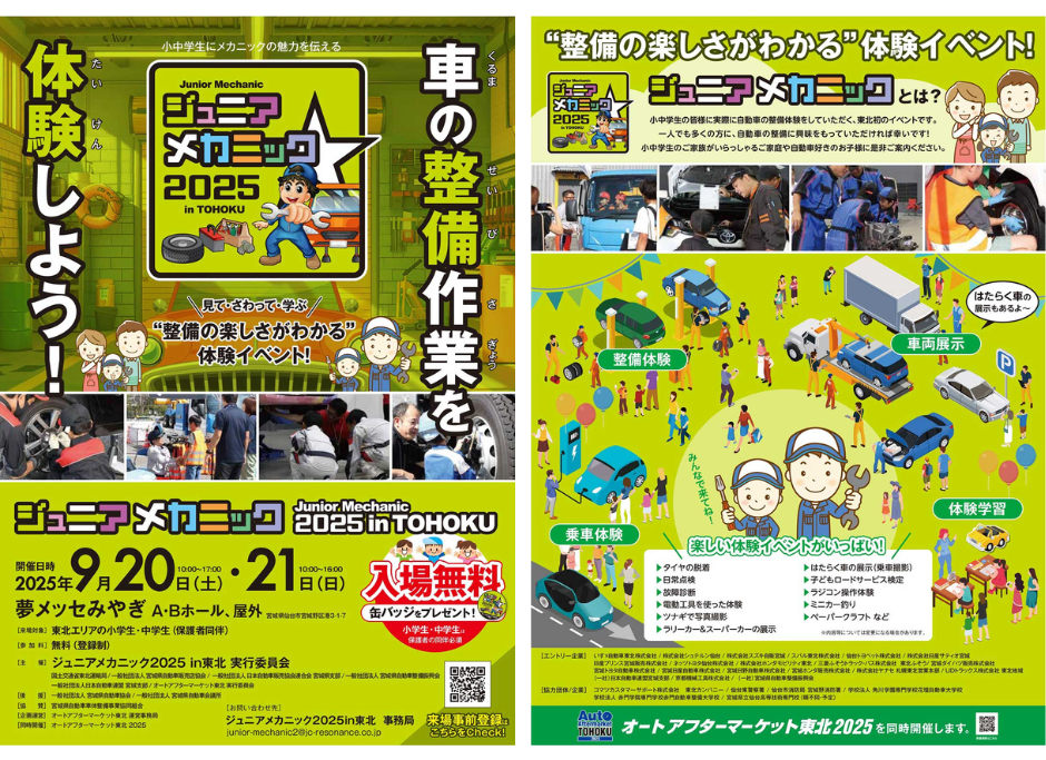 9月20日(土)・21日(日)、夢メッセみやぎで、東北初となる小中学生向けの自動車整備体験イベントが開催されます。