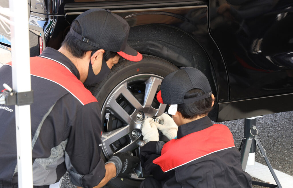 プロの指導を受けながらタイヤ交換などの整備体験に挑戦できる