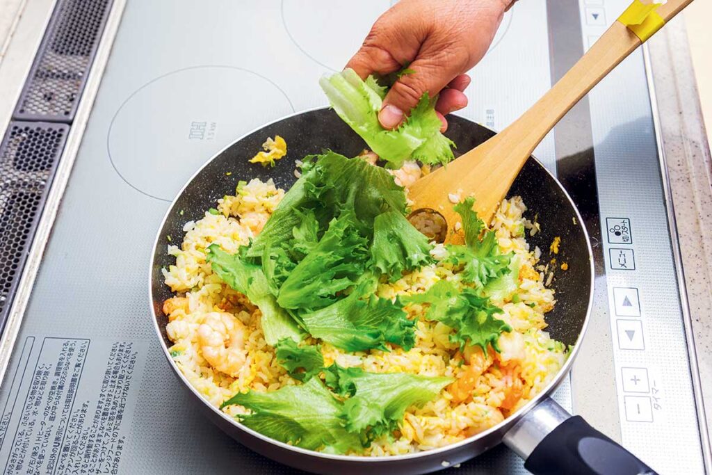 (※2)フリルレタスは短時間だけ混ぜてすぐ火を止めることで、シャキシャキした食感が残ります