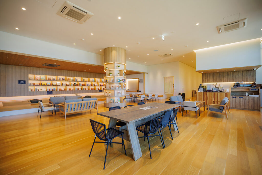 約90℃の高温ドライサウナでしっかり汗をかき、温泉と同じく地下から汲み上げる水風呂で身体を冷やしたら、太平洋から吹き抜ける海風にあたりながら外気浴。そんな贅沢な時間を過ごせます。お風呂上がりはライブラリーカフェでドリンクを片手に本を読んで、ゆったりとリセットするのもおすすめです。