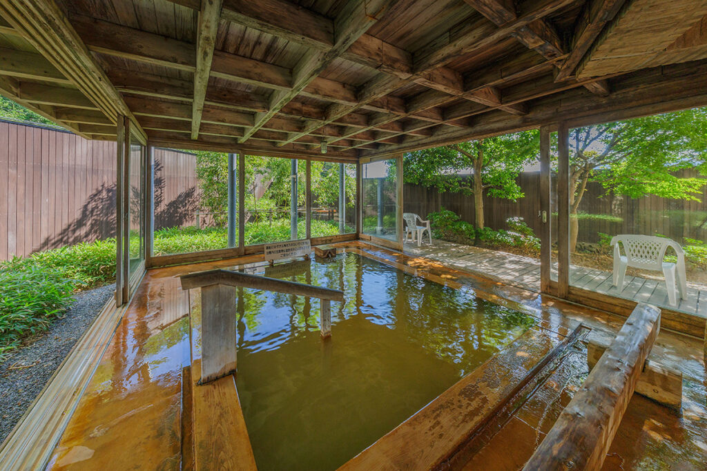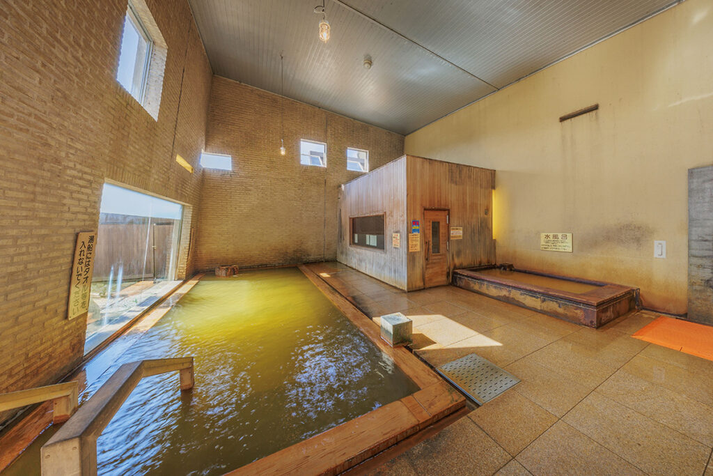 黄土色が特徴の温泉は鉄分と塩分が豊富。身体が芯から温まり、お風呂上がりでもポカポカが続きます。