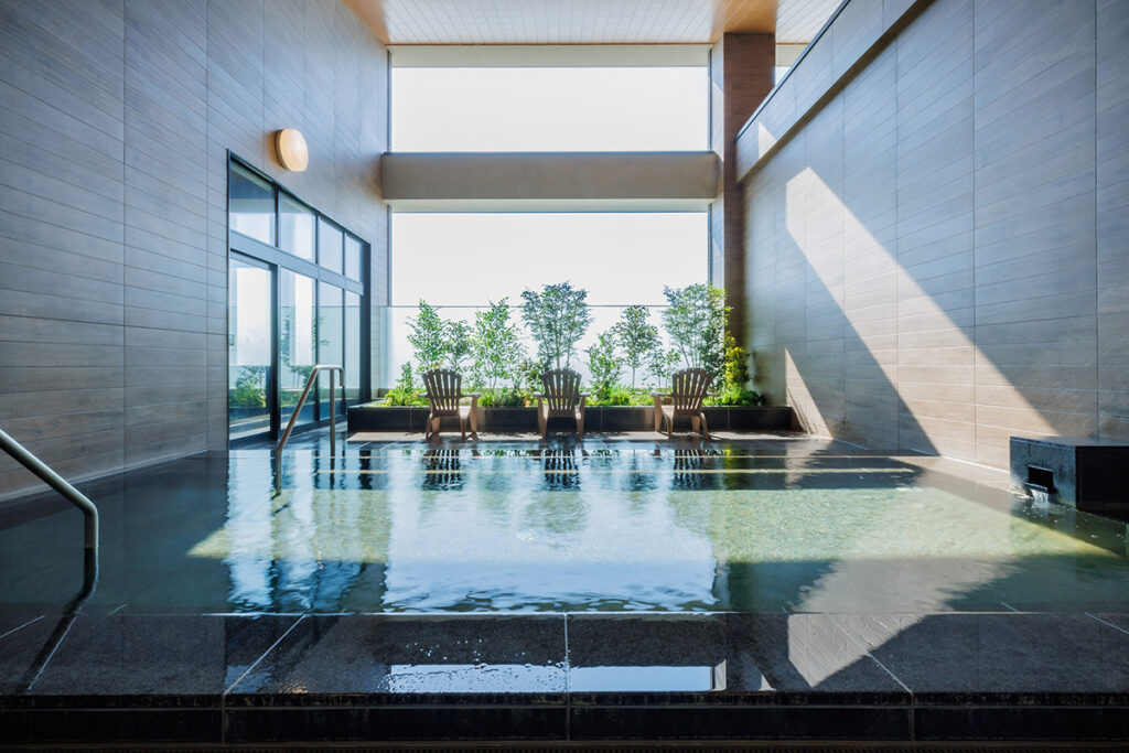 地下1,000mの大深度から湧き出る『アクアイグニス仙台』内の「藤塚の湯」は、温泉・サウナ・ボディケア・グルメと、ととのいポイントが盛りだくさん。泉質は塩化物・炭酸水素塩泉を含み、まさに“全身で浸かれる美容液”のようです。