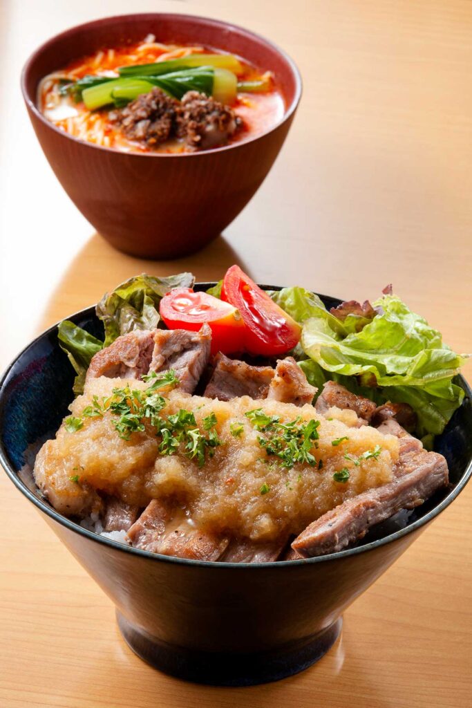 ある日のランチの「ポークステーキ丼とミニ担々麺」(1,000円)