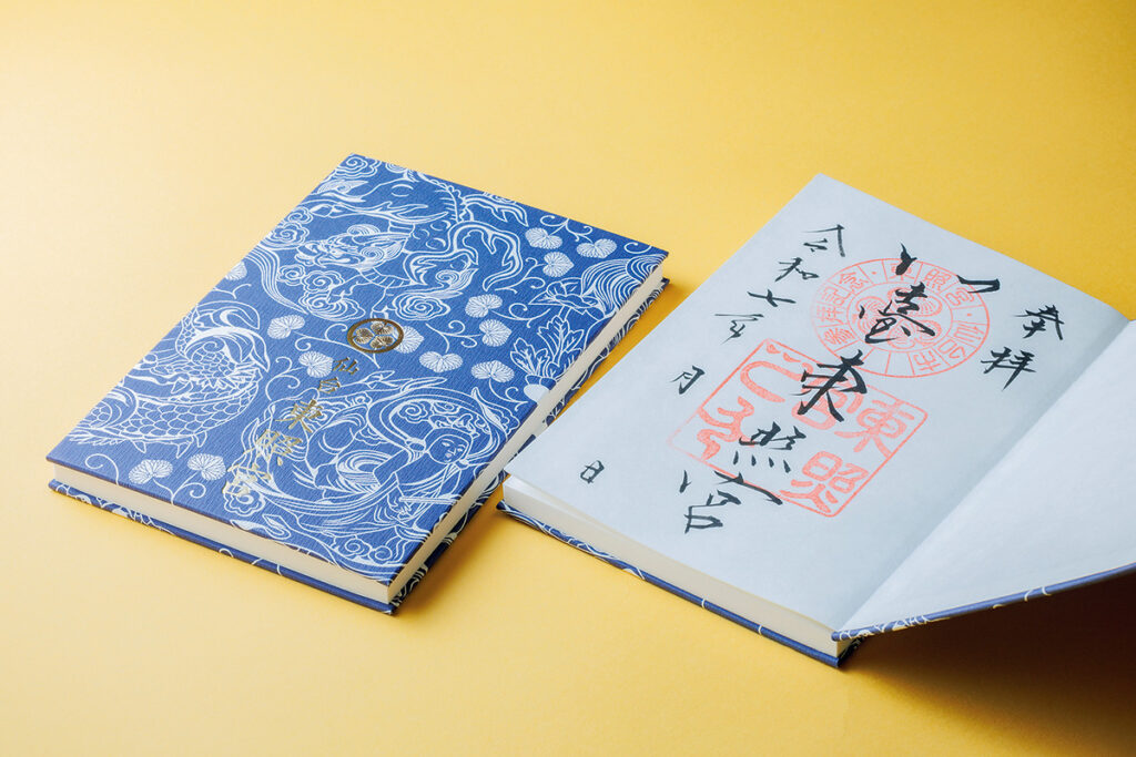 徳川家の葵の御紋が入った御朱印帳(初穂料1冊2,000円)はブルーとピンクの2色展開