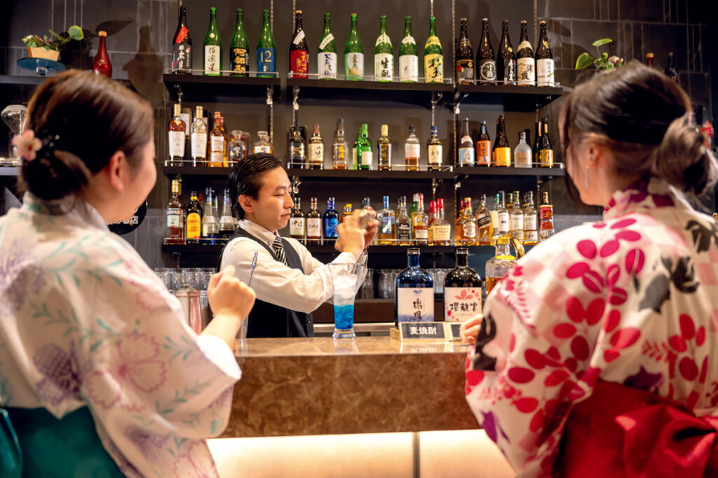 夕食時の飲み放題コースでは、レストラン内バーカウンターでバーテンダーが好みの一杯を提供