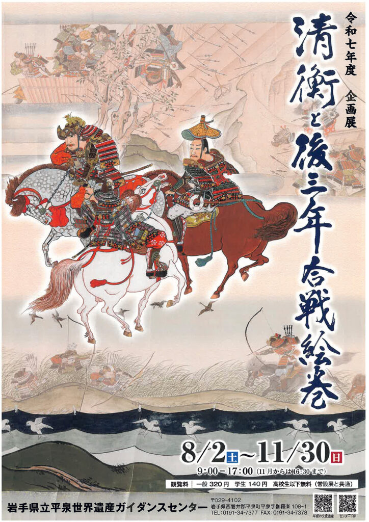 11月30日まで『平泉世界遺産ガイダンスセンター』で開かれる企画展「清衡と後三年合戦絵巻」では、秋田県『金澤八幡宮』所蔵の貴重な絵巻が公開される