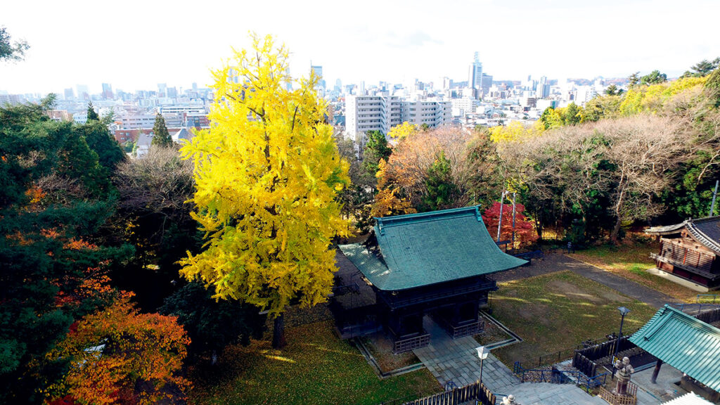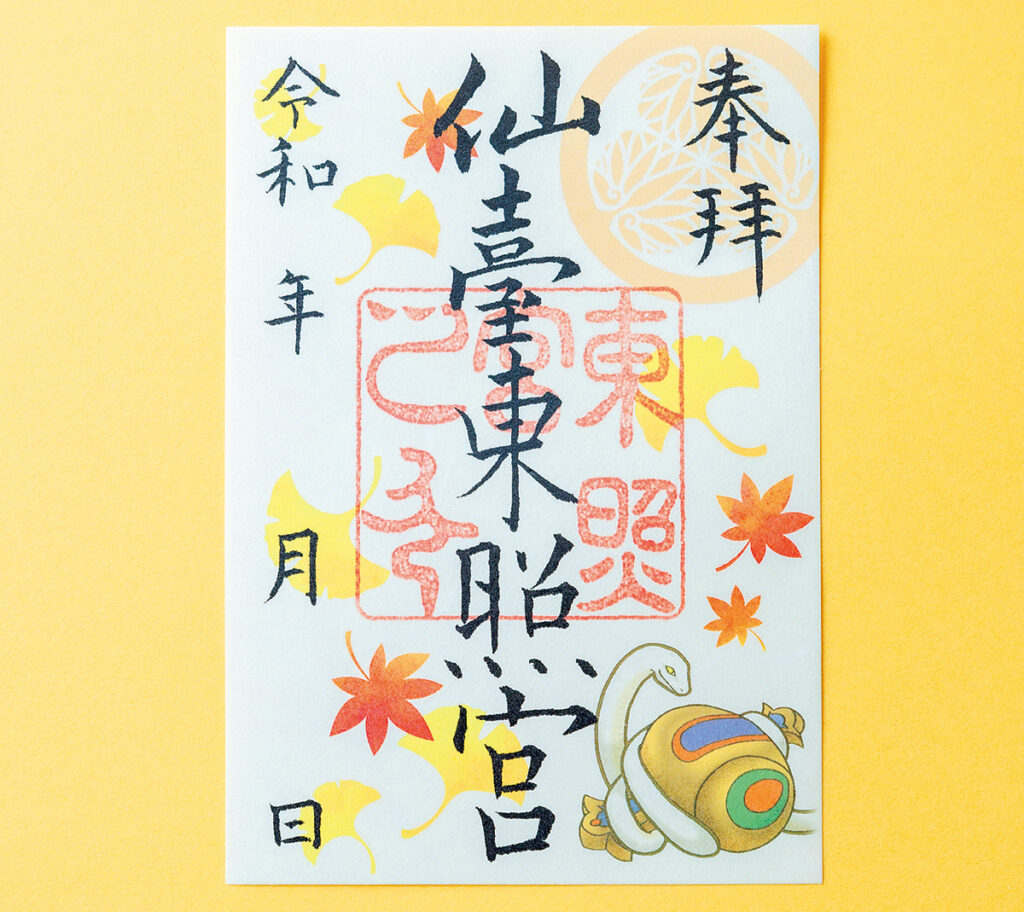 1654(承応3)年3月、仙台藩二代藩主・伊達忠宗公によって創建。国指定の重要文化財である本殿は、秋になるとイチョウやモミジに彩られ、黄と赤の鮮やかなコントラストに包まれます。境内を歩けば、秋の色彩に心まで染まるよう。さらにこの時季ならではの御朱印や御守が授与され、参拝もひときわ特別に感じられます。10月18日(土)には「宮町秋祭り」が開かれ、多くの露店で賑わいます。