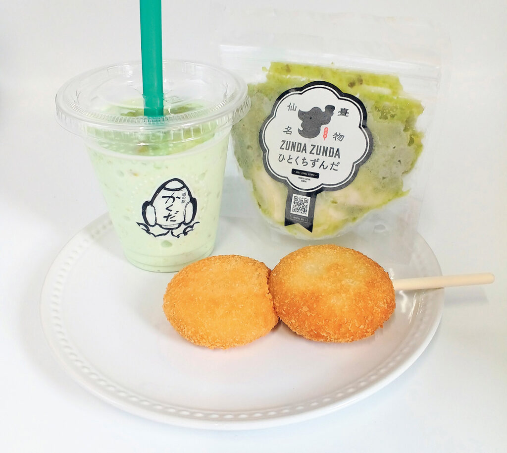 「ずんだシェイク」(450円)、「ひとくちずんだ餅」(500円)、「ちーずんだ」(350 円)など、ずんだスイーツがずらり!