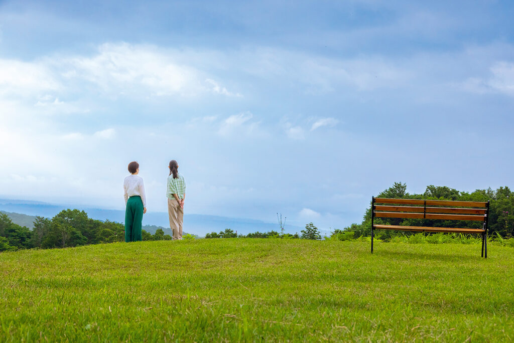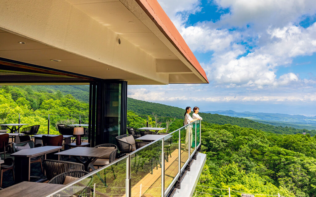 十和田八幡平国立公園・岩手山の南西麓、標高770mに建つ休暇村岩手網張温泉。2025年7月には、絶景を望む「テラス&ダイニング岩手山」がオープンしました。南東方向へ張り出したL字型のテラスからは、270度に広がる大パノラマや朝の雲海を堪能できます。日が暮れると暖炉に灯がともるラウンジは昼とは違う表情に。館内のブックシェルフには、雫石町立図書館の司書が選んだ本が並び、滞在のひとときを豊かに彩ります。ダイニングでは地元の食材を活かしたライブキッチン形式のビュッフェを用意。さらにリフトで訪れる「天空の丘」からは雄大な眺望が楽しめ、ここでしか体験できない時間が広がっています。