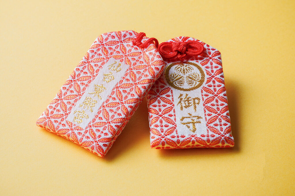 モミジ柄があしらわれた秋限定の御守(初穂料800円)。健康と諸願成就を祈願