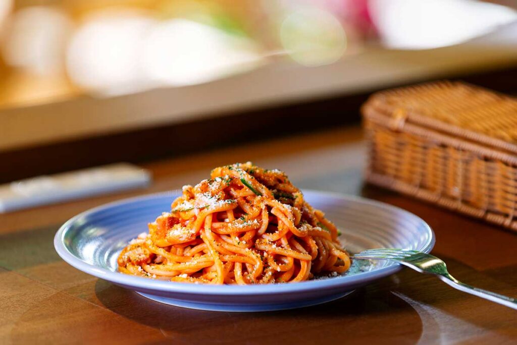 ランチタイムのおすすめは、生パスタのもちもち食感が人気のパスタメニュー(950円〜)。