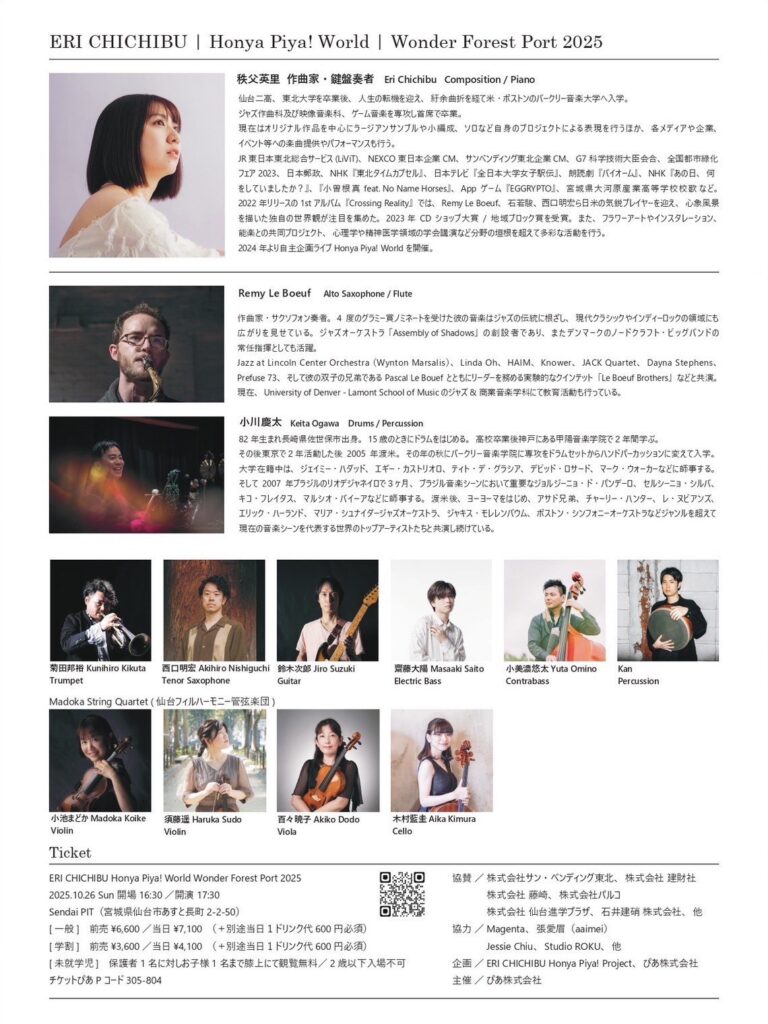 海の向こうから仙台にやってくるスペシャルゲストとの演奏やバンドセッションも大きな見どころ。コラボやグッズ類も揃え、来ていただけるみなさんが思い思いに楽しんでいただけるライブを準備しております。ぜひ会場でお会いしましょう!」