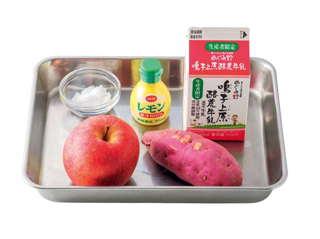 いろいろな品種のりんごとさつまいもを使い