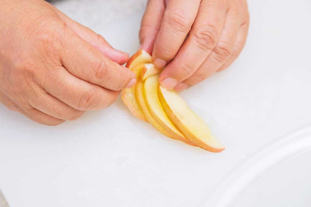 (※1)りんごは3mmで薄切りするとバラを形成するときに巻きやすくなります