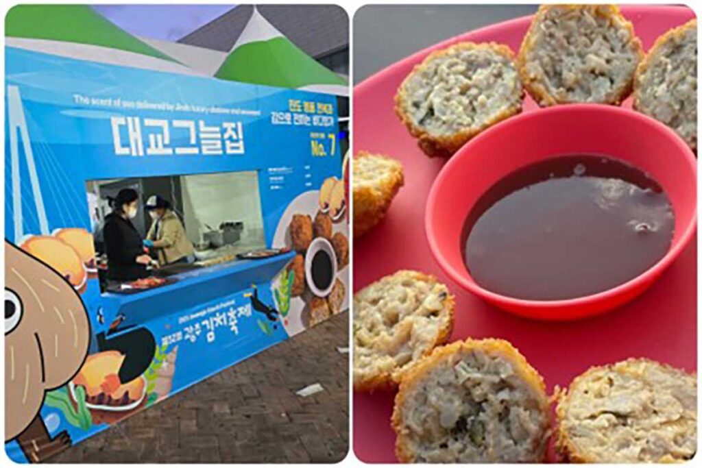 そしてこちらも人気だった『전복 품은 김치 볼카츠-チョンボク プムン キムチボールカツ』!!なんとアワビキムチが入ったメンチカツ!!