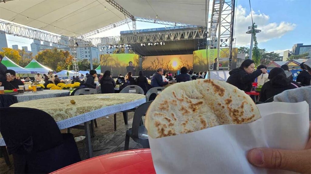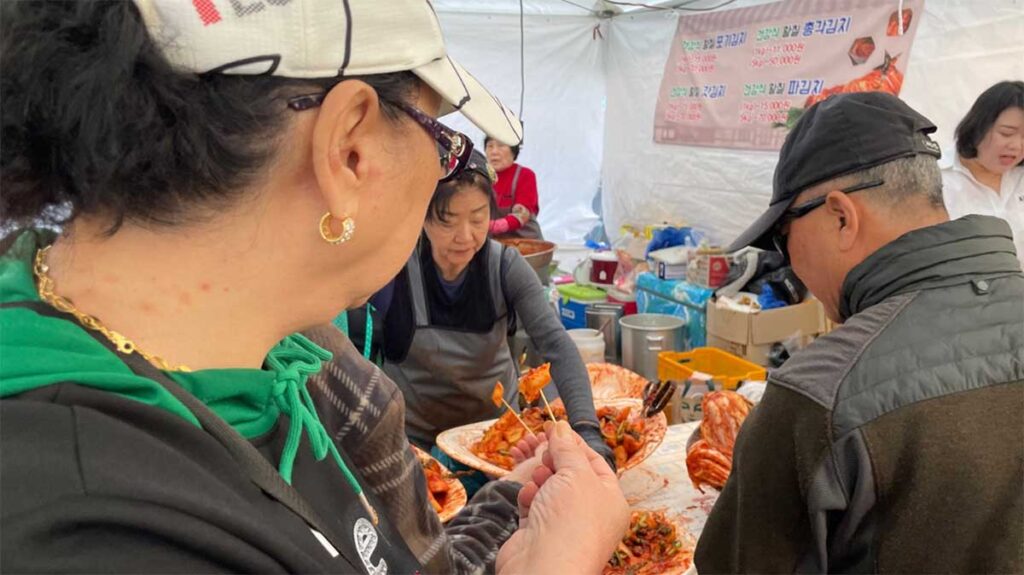 キムチの良い香りが漂う試食販売コーナーからハンドメイドや特産物の販売ブースなどがたくさん立ち並びます。
