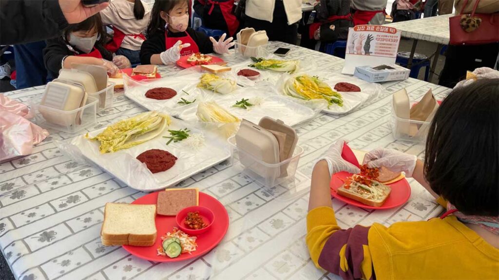 キムチ作りの体験ブースでは、キムチを挟んだキムチサンドイッチを作っていました!!