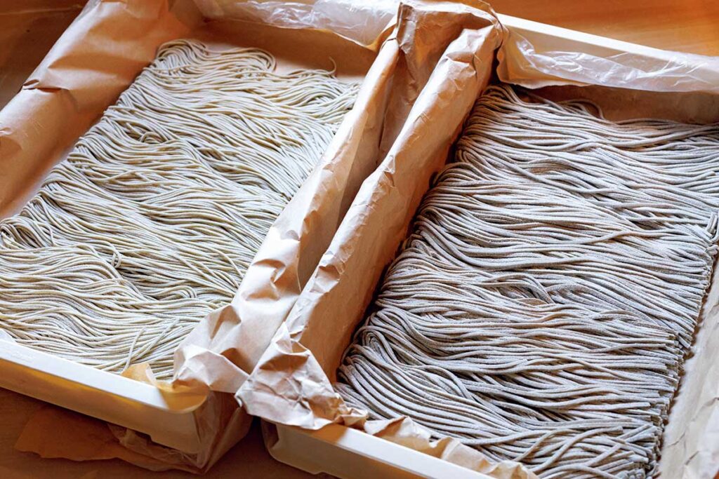 細打ちの「白」と太打ちの「黒」。この日は芳醇な香りと甘みが特徴の茨城産「常陸秋そば」を使用