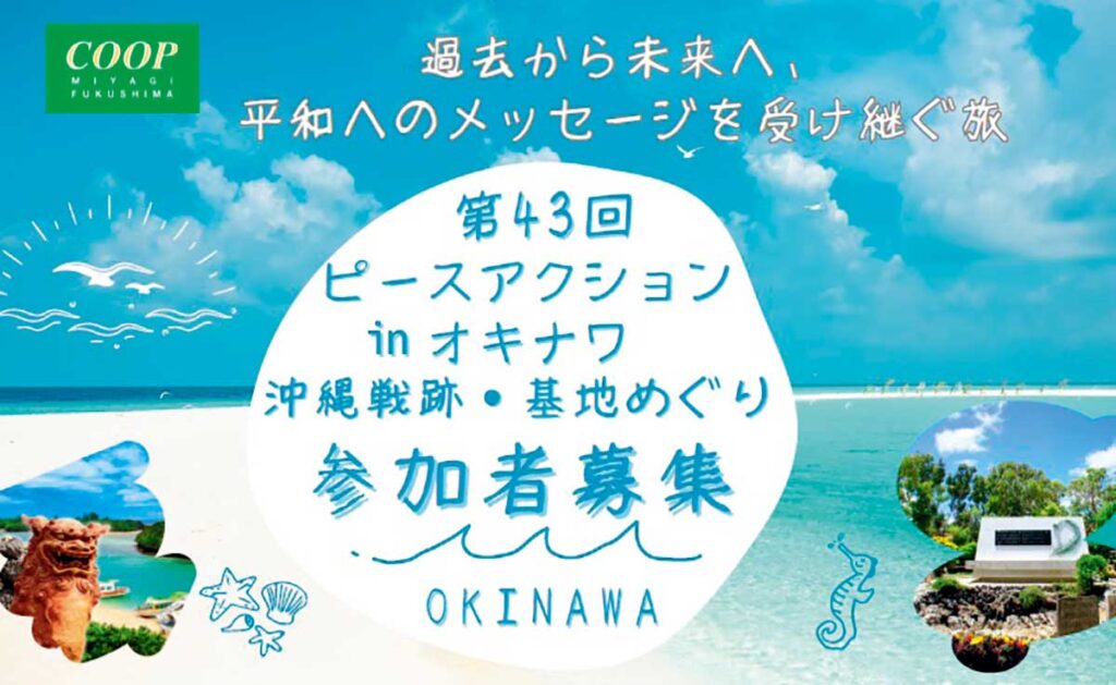 みやぎ生協、コープふくしまではメンバー(組合員)の皆さまからの平和募金を活用し、ピースアクションinオキナワ「沖縄戦跡・基地めぐり」への派遣を行っています。沖縄戦の実相や現在も続いている基地の問題について学び、平和について考えてみませんか?