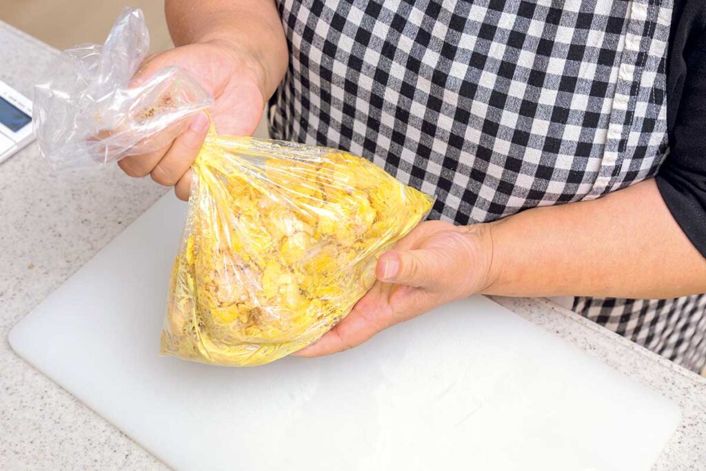 (※2)ビニール袋に入れて材料を揉みこむことで、簡単に味と衣がつくほか洗い物も減ります