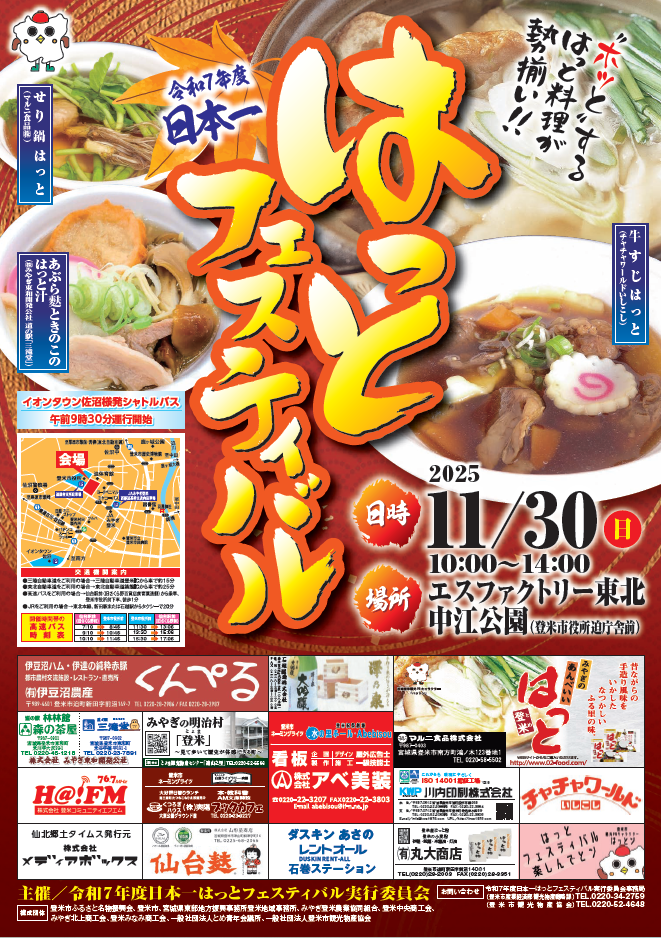 今日は、登米市の特派員から届いたイベント「日本一はっとフェスティバル」の情報をご紹介します。