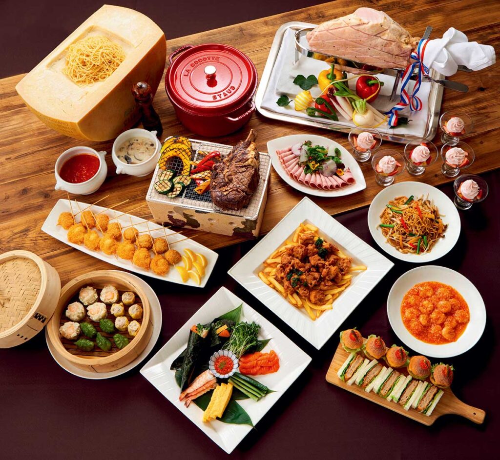 令和7年度「現代の名工」を受賞した、菅井敏彦総料理長らが手がけるローストビーフや魚料理、エビチリや麻婆豆腐などの中国料理に加え、パティシエ特製のスイーツまでずらりと並びます。