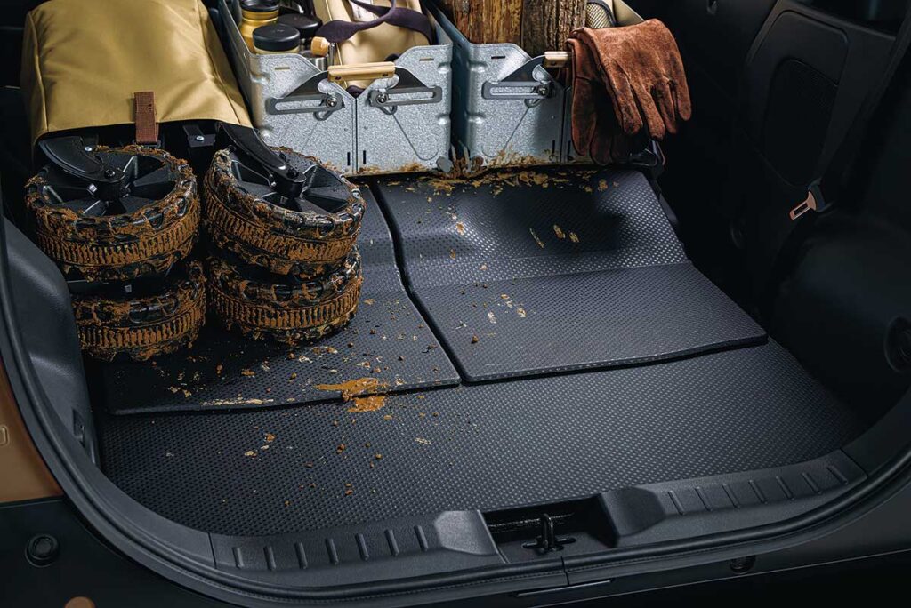 自然の中でも映える個性的なフロントフェイスや厚みのある角ばったボディ、ワイドなスキッドプレート風デザインなど、より存在感もアップ!