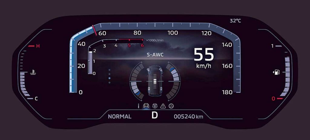 現行モデルのアナログ式メーターを、新型では8インチフルカラー液晶のコンビネーションメーターへアップデート。