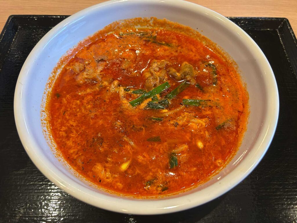 「【名物】ユッケジャンスープ」(590円)。小サイズは290円で丼とセットにできる