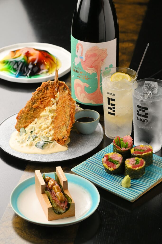 一番町に誕生した「居酒屋にご」は、五島列島の海と畑をテーマにした料理と、にぎやかな雰囲気が魅力の創作酒場。前菜から〆まで見た目も楽しく、会話が自然と弾むメニューが揃います。