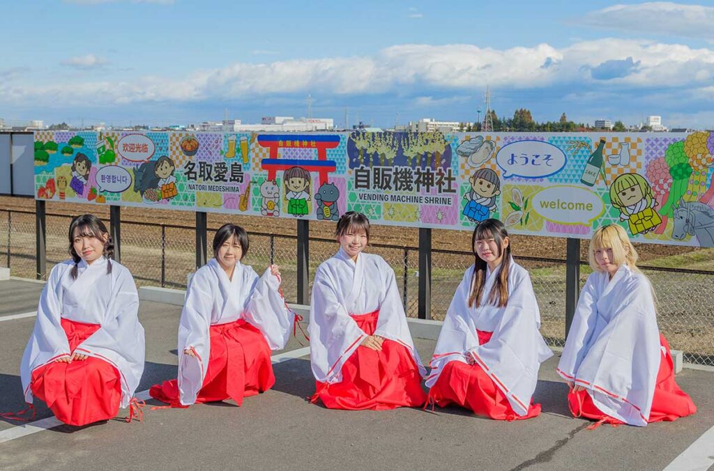 「日本のすばらしい自販機文化を世界へ発信したい!」そんな思いを込めて名取市に“自販機聖地”を作るプロジェクトから生まれたのが、「ウィズドリンクショップ名取市愛島店」の自販機神社。