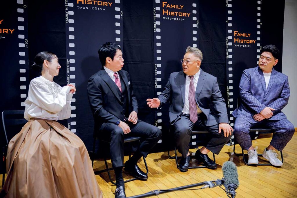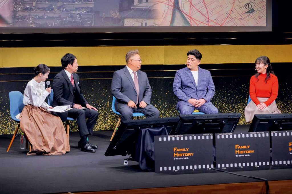 司会の今田耕司さん、寺門亜衣子アナウンサー、ゲストのサンドウィッチマン(伊達みきおさん、富澤たけしさん)が登壇し、宮城の家族史にまつわる実話に向き合いました。