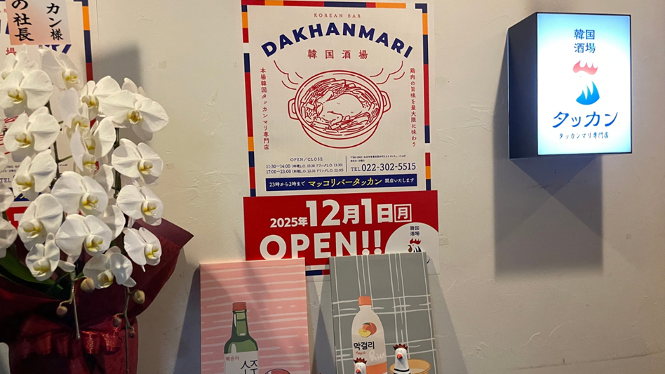 2025年12月1日に国分町にオープンしたタッカンマリ専門店『韓国酒場タッカン』は、ミシュランガイド掲載の実績を持つ人気の焼肉店『泰山』のオーナーが経営する韓国料理店。